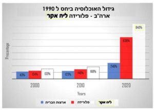 להלן מוצגים הנתונים של גדילת האוכלוסייה בארה"ב בעשורים האחרונים בהשוואה לפלורידה וליה אקר בפרט. ניתן לראות עליה של עשרות אחוזים ובהשוואה לכלל ארה"ב לדיור בליה אקר עליה גבוה ביותר מ 10% מכלל ארה"ב.